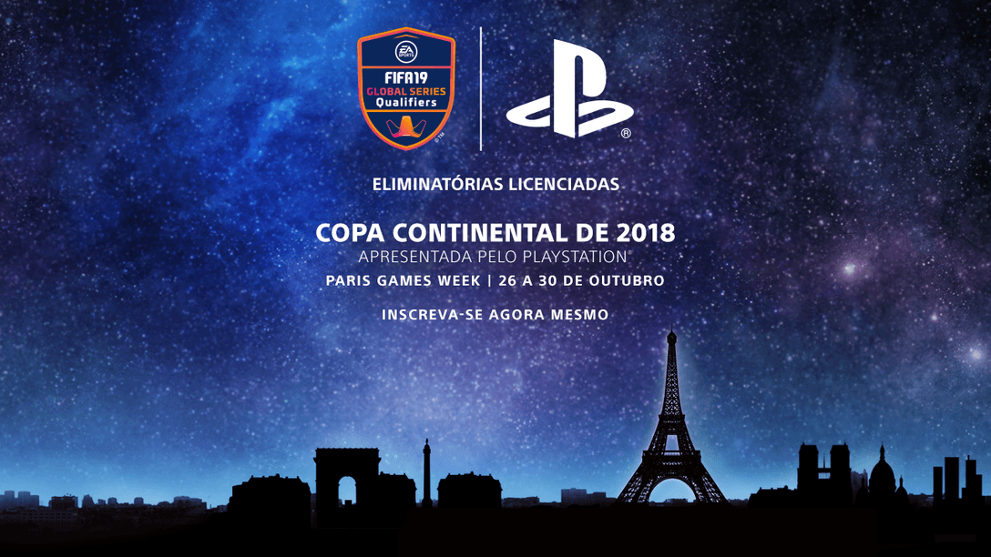 Estamos empolgados de anunciar uma oportunidade exclusiva para fãs de FIFA 19 competirem por uma chance de participar de nossa Copa Continental de 2018 na Paris Games Week entre 26 a 28 de outubro — direto de seus PS4s em casa.
