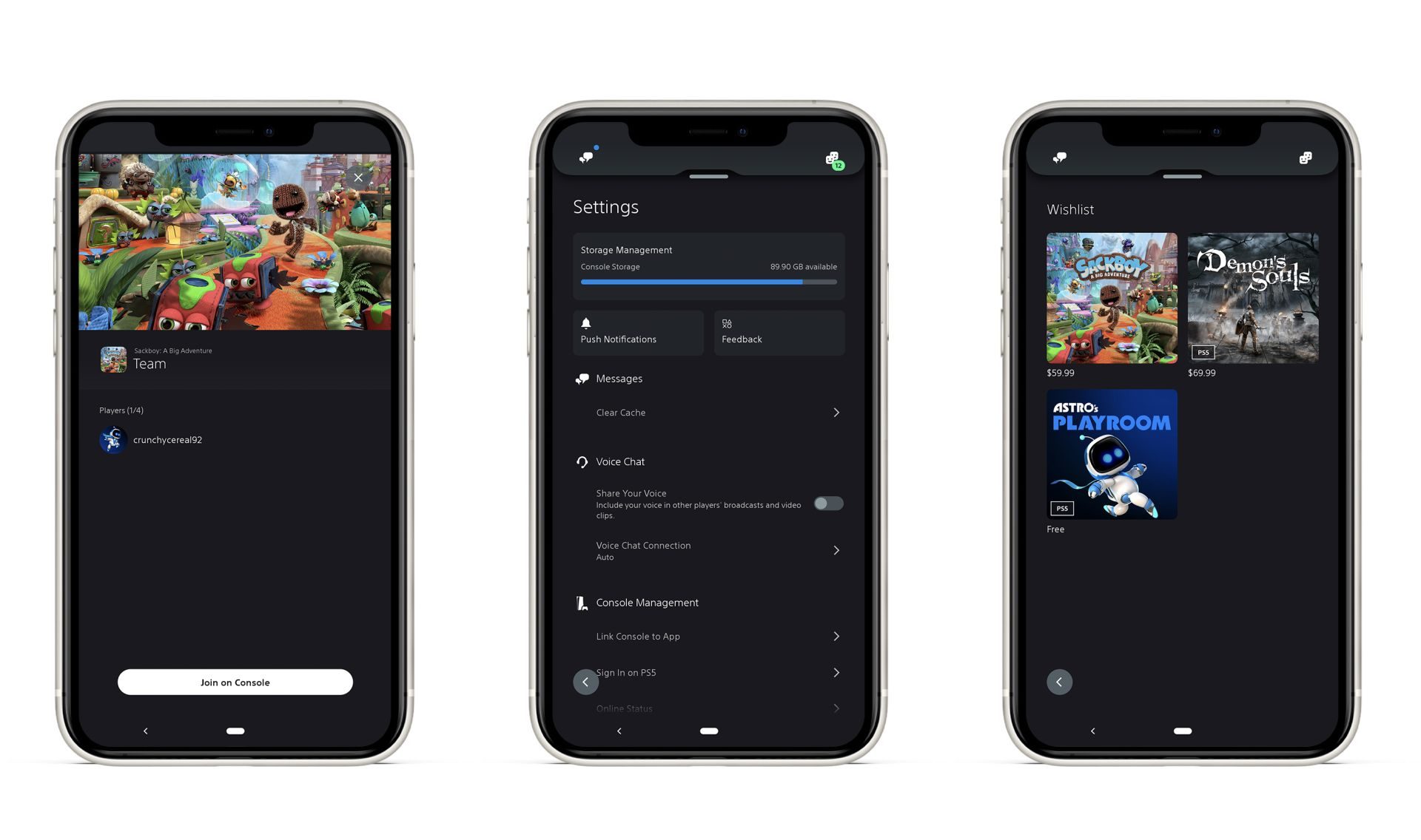 - Share Play entre gerações. Os jogadores de PS4 e PS5 agora podem usar, juntos, o Share Play enquanto conversam em grupos. Isso significa que os usuários do console PS5 podem permitir que seus amigos com consoles PS4 vejam a tela do jogo ou até mesmo testem os jogos de PS5 pelo Share Play, e vice-versa. As opções incluem a capacidade de compartilhar a tela com um amigo, passar seu controle virtualmente para um amigo ou passar um segundo controle virtualmente para jogar jogos cooperativos juntos.